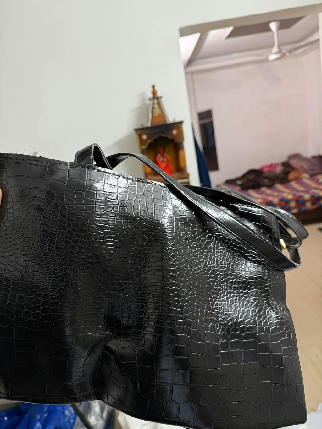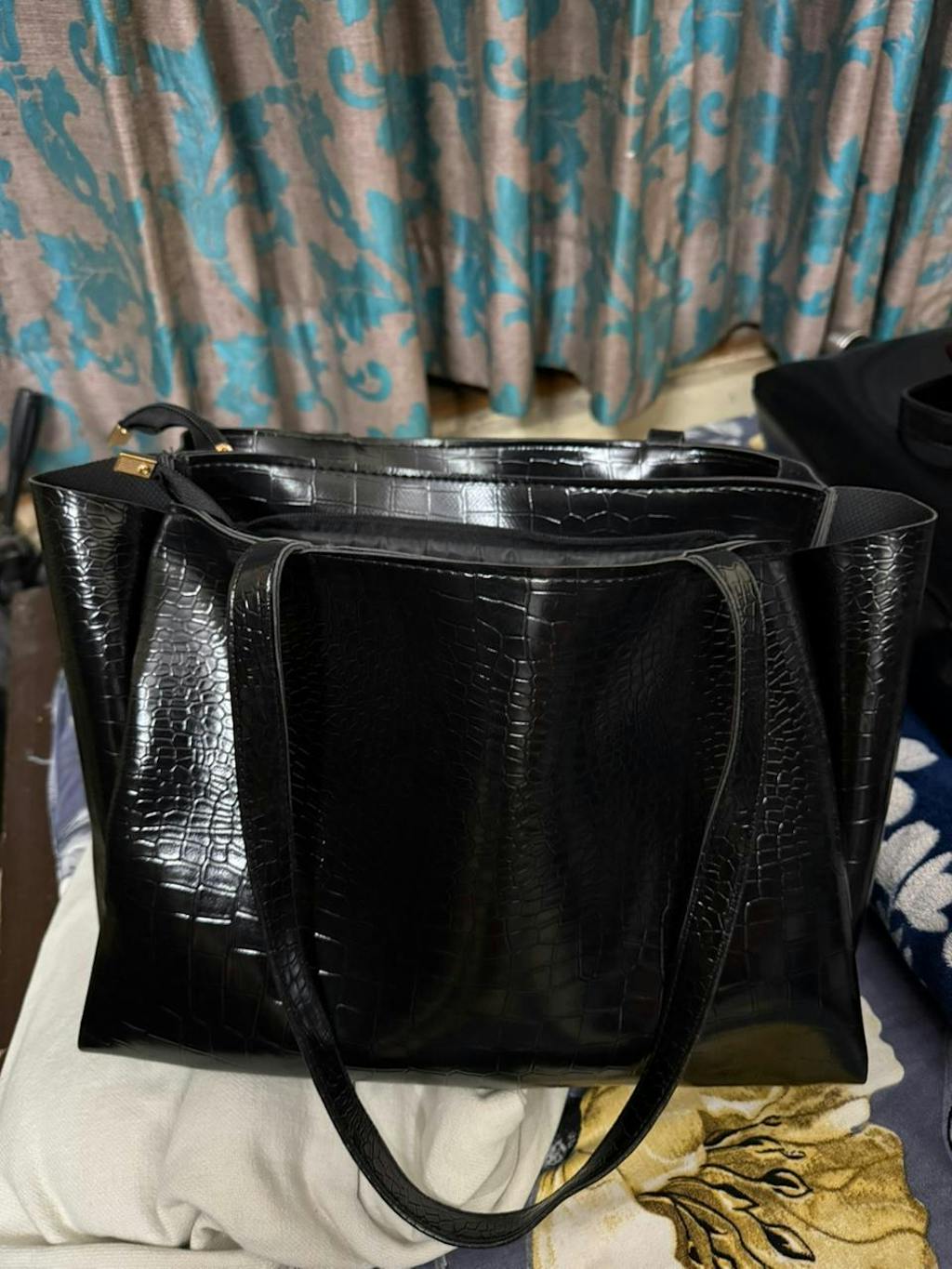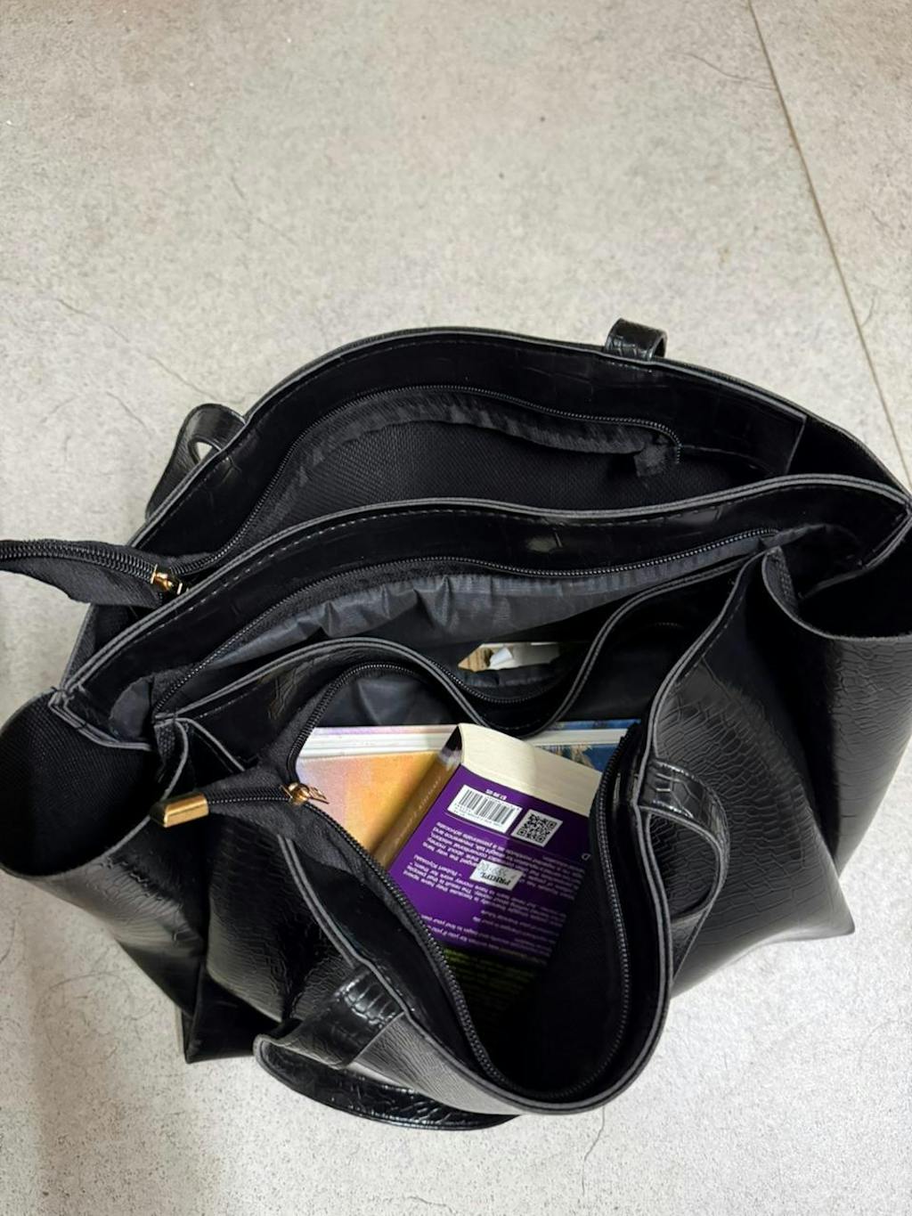 The Luna Croco Texture Black Shoulder Bag is designed for everyday functionality with a bold, structured appeal. Crafted from durable faux leather with an elegant crocodile-textured finish, this tote adds a refined edge to daily outfits. Featuring three separate zip compartments, it offers organized storage for work essentials, daily carry items, and on-the-go needs. Spacious yet structured, Luna is ideal for office use, errands, meetings, and everyday outings, making it a reliable, stylish companion for women who need both form and function.