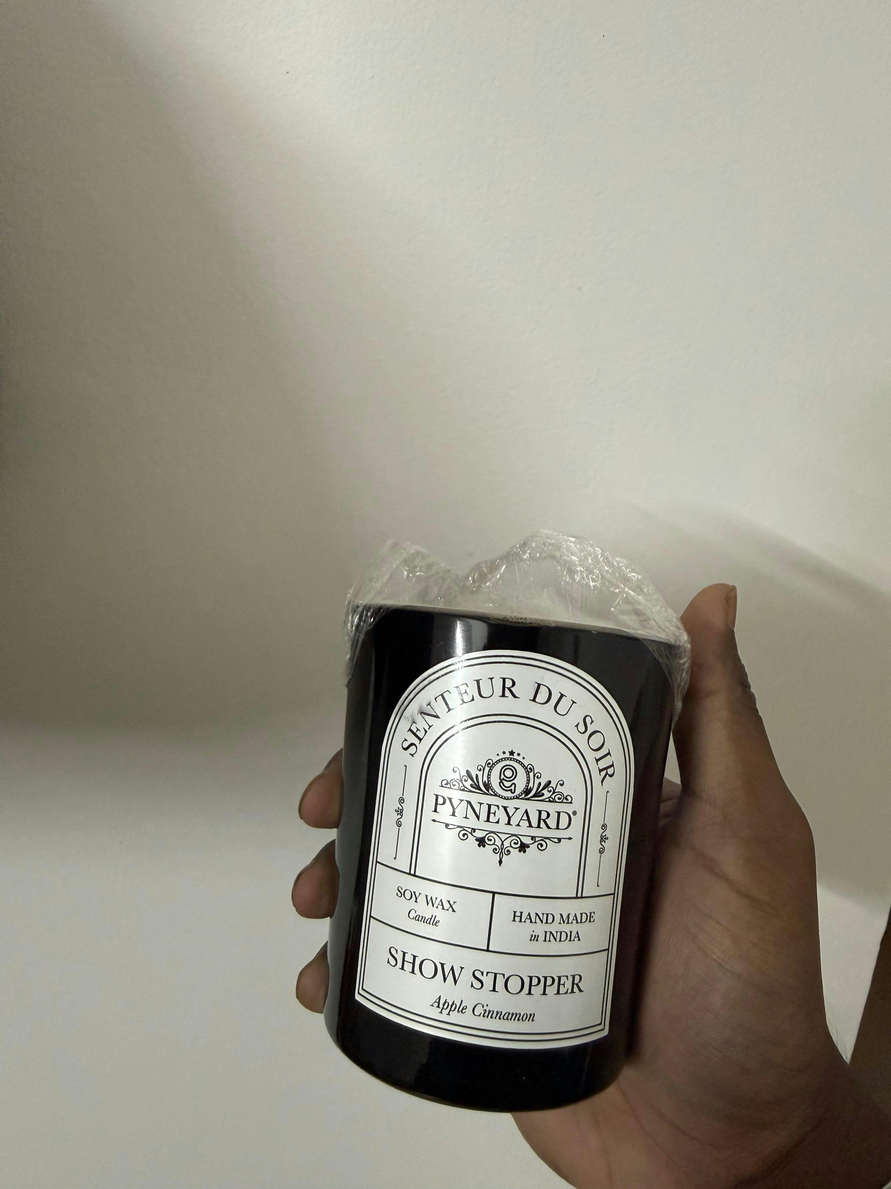 Spicy, sweet, and ready to steal the spotlight — the Showstopper (Apple Cinnamon) Scented Candle is the ultimate mood-setter. Hand-poured with 300 grams of natural soy wax and finished with a gentle crackling wooden wick, this rich blend of crisp apple and warm cinnamon is housed in a sleek black premium glass jar. One light, and it's all eyes on your space.